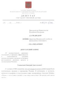О принятых Вами мерах просим сообщить в Государственную Думу Федерального Собрания Российской Федерации в установленные законом сроки.