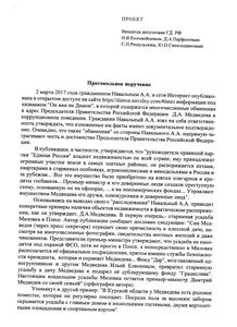 2 марта 2017 года гражданином Навальным А.А. в сети Интернет опубликована в открытом доступе на сайте https//dimon.navalny.com/#introинформация под названием "Он вам не Димон", в которой содержатся многочисленные обвинения в адрес Председателя Правительства Российской Федерации Д.А. Медведева в коррупционном поведении. Гражданин Навальный А.А. взял на себя ответственность утверждать, что изложенные им факты имеют документальное подтверждение. Очевидно, что такие "обвинения" со стороны Навального А.А. напрямую затрагивают честь и достоинство Председателя Правительства Российской Федерации.