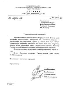 С полученной информацией ознакомить депутатов Государственной Думы Федерального Собрания Российской Федерации.