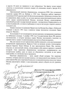 Депутаты фракции КПРФ в Государственной Думе во главе с Г.А. Зюгановым направили обращение мэру Москвы с требованием восстановить памятник Ф.Э. Дзержинскому на Лубянке.