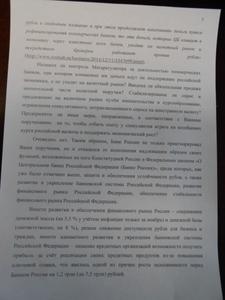 Очевидно, нет. Таким образом, Банк России не только проигнорировал Ваши поручения, но и отказался от исполнения надлежащим образом своих функций, возложенных на него Конституцией России и Федеральным законом «О Центральном банке Российской Федерации (Банке России)», среди которых, как уже было отмечено выше, защита и обеспечения устойчивости рубля, а также развитие и укрепление банковской системы Российской Федерации, развитие финансового рынка Российской Федерации, обеспечение стабильности финансового рынка Российской Федерации.