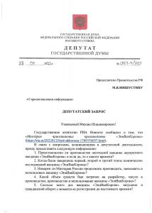 Обозначенные факты о возможном «конфликте интересов» при принятии решения о целесообразности применения вакцины также стали предметом депутатского запроса С.П. Обухова в адрес Правительства Российской Федерации.
