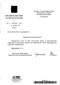 Ответ вице-премьера Голиковой на один из таких депутатских запросов