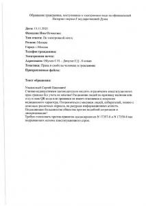 Согласно п. 2 статьи 17 Федерального закона «О статусе сенатора Российской Федерации и депутата Государственной Думы Федерального Собрания», органы власти, при обращении депутата Государственной Думы, должны предоставлять в адрес депутата запрашиваемые им документы и сведения. Однако, в нарушение данной нормы закона, никаких объективных ответов на запросы о целесообразности, законности и возможных последствиях принудительной вакцинации, а также куардизации общественной жизни, власти так и не предоставили.
