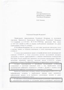 Ответ Минздрава на депутатский запрос С.П. Обухова об обоснованности ужесточения масочного режима на фоне сведений об их невозможности остановить распространение ковида.