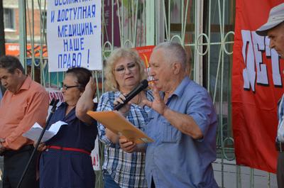 Открыла и вела митинг депутат городской Думы Биробиджана, председатель регионального отделения общественной организации «Дети войны» Алла Палькина. Она поприветствовала собравшихся и сразу же передала слово депутату Заксобрания ЕАО, первому секретарю обкома КПРФ Владимиру Фишману.
