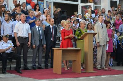 В День знаний первый заместитель Председателя Комитета Госдумы по международным делам, заместитель Председателя ЦК КПРФ Дмитрий Георгиевич Новиков и кандидат на должность губернатора Севастополя Роман Владимирович Кияшко посетили торжественную линейку в школе №34.