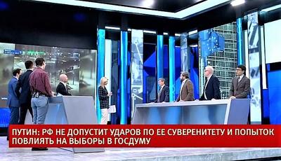 Отдельный блок программы был посвящён встрече В.В. Путина с лидерами фракций Государственной Думы. Президент, в частности, заявил о необходимости защиты суверенитета страны и недопущении иностранного вмешательства в выборы.
