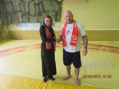 Киришский коммунист Алексей Сова, организовавший нашу встречу с бойцом-чемпионом, спросил, понравилось ли ему то, чем занимаются в «Белом кречете» (в клубе ребят готовят к службе к армии, обучают приемам рукопашного боя с применением с оружия, как это делается в войсках). Джеф Монсон ответил, что считает патриотическую работу одним из важнейших направлений в работе с молодежью. Но при этом заметил, что все-таки больше доверяет единоборствам, чем оружию.