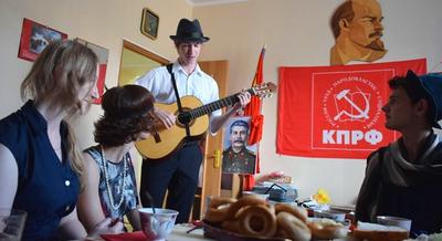 «Стрелки бегут по кругу, время идёт вперёд!» После сегодня никогда не наступает вчера. Впрочем, жарким днём 30 июля в городе Альметьевске нашлось место, где время вдруг резко повернуло вспять, и 2017 год превратился в 1930. Таким местом стал Альметьевский горком КПРФ, где состоялся молодёжный ретро-вечер, организованный при активном участии молодых коммунистов для всех желающих.