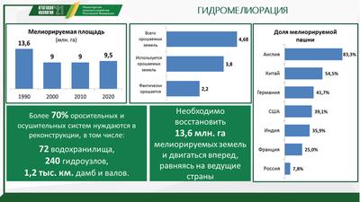 Переувлажненных и заболоченных земель у нас 25 млн. га, и при этом 70% мелиоративных сооружений полностью изношены.