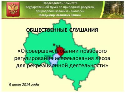 Доклад В.И. Кашина на Общественных слушаниях: «О совершенствовании правового регулирования использования лесов для рекреационной деятельности»