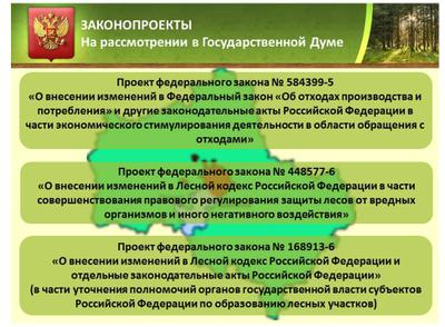 Кроме того депутатами Комитета в Государственную Думу внесен законопроект № 448577-6 «О внесении изменений в Лесной кодекс Российской Федерации в части совершенствования правового регулирования защиты лесов от вредных организмов и иного негативного воздействия», принятие и реализация которого станет залогом успешной работы: