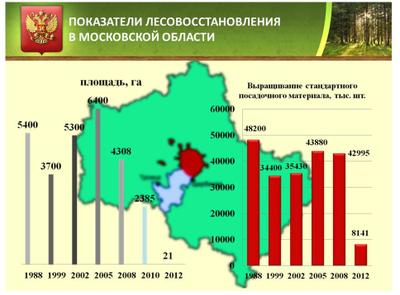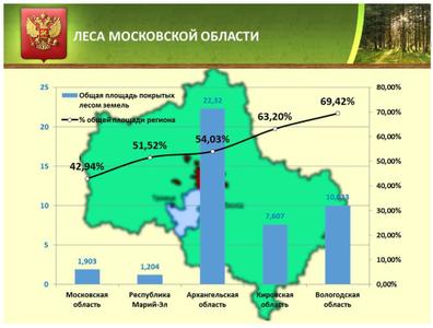 Поднятая в рамках сегодняшнего мероприятия тема является одной из наиболее актуальных для подмосковного региона.Московская областьпочти полностью (за исключением южной половины Серебряно-Прудского района) расположена в лесной зоне.При общей площади региона в 4,4 млн. га, 1,9 млн. га (43%) покрыто лесами.По доле территории, занятой лесами, Подмосковьеблизко к лидирующим «лесным» регионам.