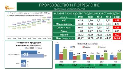Мы видим, как за последние годы мы с вами работаем при том разорении, которое было после 1991 года. Видим основные показатели, которые нас сегодня радуют, и те показатели в красной зоне, над которыми мы должны работать. В первую очередь, конечно, речь идет о производстве овощей, фруктов.
