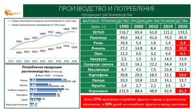 При этом важно обратить внимание и на потребление. Мы недобираем сегодня до нормального рациона 38 килограммов фруктов и 32 килограмма овощей, исходя из чего, должны ставить перед собой соответствующие задачи.