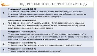 Принят закон о виноградарстве и виноделии - базовый законодательный акт для всей отрасли. Принят закон об агролесомелиорации, принят федеральный бюджет, и ряд других важнейших законодательных инициатив.