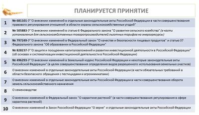 Вторая не менее важная задача, которую мы сегодня также имеем право вам доложить, это повышение эффективности использования земель сельскохозяйственного назначения через принятие соответствующей государственной программы.