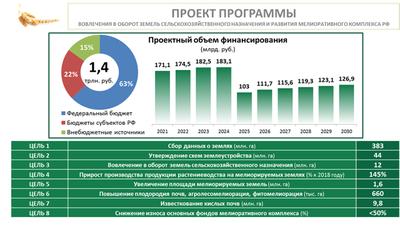 Докладывая на совещании у Председателя Правительства Российской Федерации наше видение задачи по вовлечению в севооборот заброшенных земель сельскохозяйственного назначения и, в первую очередь, пашни, мы обозначили, что эта работа фактически является второй целиной, ведь речь идет о 40 млн. га! Нам удалось найти поддержку с его стороны и поручение о подготовке соответствующей программы было подписано. Подготовка проекта должна быть завершена уже в феврале.
