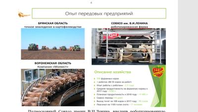 Подмосковный Совхоз имени В.И.Ленина, внедрив роботизированную ферму, уже вышел по надоям на 11 тыс. литров, а оптимизированные в результате модернизации производственные процессы позволяют 17 сотрудникам полностью обслуживать стадо в 1100 голов КРС.