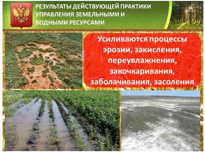 Ситуация усугубляется тем, что усиливаются процессы деградации земель – эрозии, закисления, переувлажнения, закочкаривания, заболачивания, засоления.
