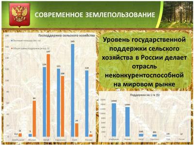 Уровень государственной поддержки делает российское сельское хозяйство неконкурентоспособным, особенно в условиях ВТО.