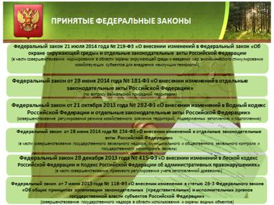 Это закон закрепляет основополагающие начала взаимоотношений в системе «человек – окружающая среда». Не секрет, что в виду относительной декларативности отдельных положений Федерального закона «Об охране окружающей среды» не в полной мере реализуется важнейший принцип охраны окружающей - «загрязнитель платит».
