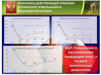 При том, что в 2013 году завершилась Федеральная целевая программа «Сохранение и восстановление плодородия почв земель сельскохозяйственного назначения и агроландшафтов как национального достояния России», приведенные сведения отражают всю «эффективность» принимаемых решений.