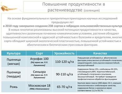 Сейчас в Российской академии наук завершилось обобщение результатов научных исследований за 2018 год и отделение сельскохозяйственных наук представило сведения о завершении создания 238 новых сортов и гибридов сельскохозяйственных культур. Вклад в эту работу внес каждый наш научно-исследовательский институт и центр, благодаря чему мы видим восхитительные результаты и по урожайности, и по отзывчивости, и по устойчивости.