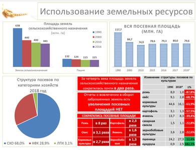 Россия потеряла уже почти половину земель сельскохозяйственного назначения, продолжает терять пашни, посевная площадь из года в год находится на уровне 80 млн. га, при том, что не так давно мы засевали более 117 млн. га!