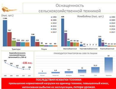 Об этом сегодня уже много говорили, но я хочу еще раз заострить внимание – в 20 с лишним раз по количеству тракторов на 1000 га пашни мы отстали от Германии, почти в 10 раз от США, в 3 раза от Беларуси! И это при том, что агроклиматические условия на наших территориях не самые благоприятные и определяют повышенные нагрузки на технику.
