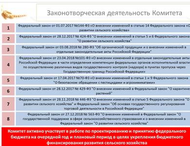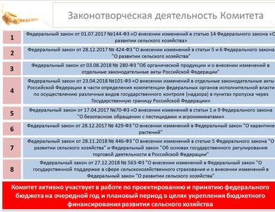 В текущем созыве Государственной Думы Комитет обеспечил принятие целого ряда важных законодательных инициатив.