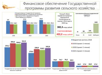 Если говорить о 2019 годе, то объемы финансирования государственной программы развития сельского хозяйства увеличены более чем на четверть и составят 304 млрд. рублей! При этом поддержку получили практически все предложенные нами подходы.