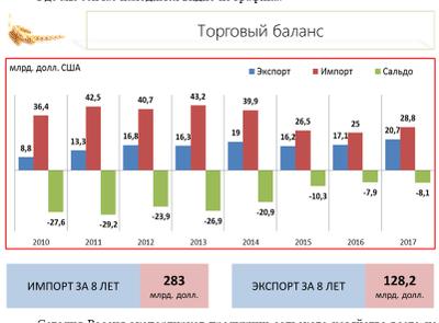 В этой связи у нас возникает справедливый вопрос - за счет чего будет обеспечен этот рост? Ведь в последние годы наши крестьяне удерживают объемы производства зерна на уровне более 115 млн. тонн с большим трудом. Это уровень 1990-го года. В текущем году, возможно, будет 106-107 млн. тонн. И это с хорошими сортами, с государственной поддержкой. Кроме того, чтобы прокормить своих граждан существенную долю продовольствия мы импортируем – ни много ни мало на 28,8 млрд. долларов! Это и молоко, и фрукты, и картофель, и мясо. Нам ведь предстоит решить и эти задачи, для того, чтобы обеспечить рост экспорта.