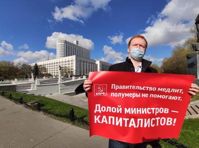 Утром 1 Мая в День международной солидарности трудящихся депутаты Госдумы от КПРФ Валерий Рашкин и Денис Парфенов, депутаты Мосгордумы от КПРФ Николай Зубрилин, Павел Тарасов, Евгений Ступин, Дмитрий Локтев и Елена Шувалова провели в столице одиночные пикеты у Кремля, администрации президента, правительства России и мэрии Москвы.