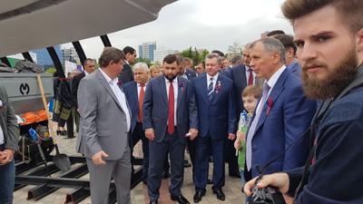 А затем мы вместе с депутатами Народного Совета, членами Правительства ДНР и другими почетными гостями из дружественных стран приняли участие в многотысячном шествии по главной улице столицы, посвященном пятилетию образования Донецкой Народной Республики.