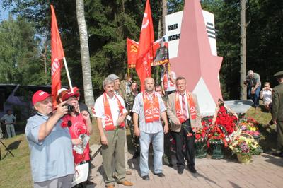 Псковские коммунисты возложили венок в виде пятиконечной звезды и живые цветы к монументу героям-комсомольцам в белорусской деревне Прошки. На пограничном мосту на территорию Латвии были переданы цветы для возложения к памятнику партизану Герою Советского Союза Иманту Судмалису. Венок в виде пятиконечной звезды и живые цветы легли к обелиску Героя Советского Союза, партизанки-разведчицы Марии Пынто. На латышской стороне собралась масса людей, которые скандировали лозунги советских времен, которые сейчас приобрели новое звучание и неимоверно актуальны: «Фашизм не пройдет!», «Воспрянет Советский Союз!».