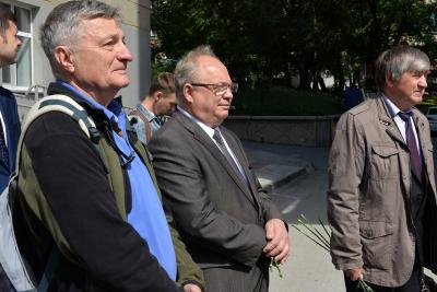 С красными гвоздиками в руках на открытие пришли многие известные новосибирцы. Среди них мэр Новосибирска Анатолий Локоть, зампред Горсовета Ренат Сулейманов, председатель городского Худсовета Александр Ложкин, глава Центрального округа Сергей Канунников, секретарь обкома КПРФ Алексей Русаков.