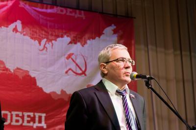 Поздравил собравшихся со сцены концертного зала Областного совета профсоюзов Первый секретарь Томского горкома КПРФ, депутат законодательной Думы Томской области Андрей Петров.