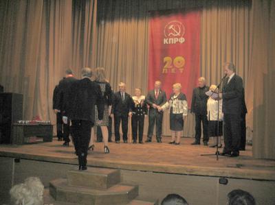 Торжественный вечер, посвященный 20-летию восстановления деятельности Ленинградской организации КПРФ, стал не ностальгической встречей коммунистов, а ярким свидетельством их убежденности в грядущей победе над властью бандитов и олигархов.