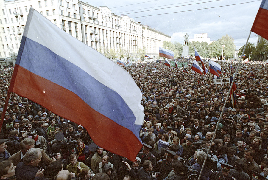 Митинг у здания Моссовета, организованный демократическими силами в поддержку Президента России Б.Н.Ельцина. © Юрий Абрамочкин/РИА Новости