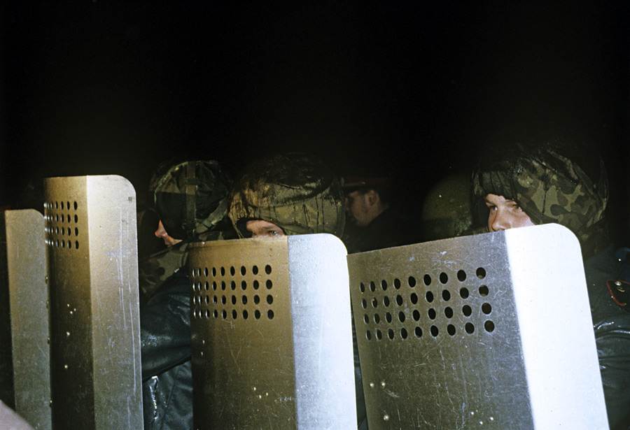 Бойцы ОМОН у телецентра «Останкино». © Игорь Михалев/РИА Новости