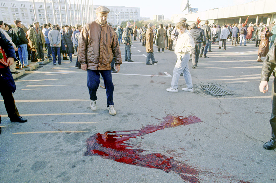 Кровь пострадавших сторонников парламента на асфальте. © А. Родионов/РИА Новости