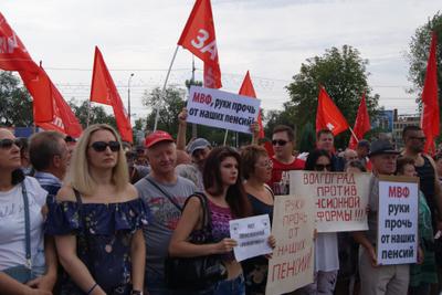 28 июля в Волгограде состоялся митинг в рамках Всероссийской акции протеста КПРФ против повышения пенсионного возраста. На площади Металлургов собрались около 2000 человек, возмущенных антинародной политикой государства. Помимо коммунистов в их числе присутствовали активисты общественных организаций, политических партий, а большую часть составили неравнодушные к будущему страны жители города.