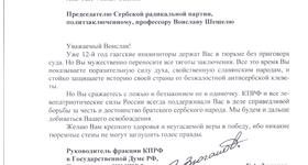 24 февраля 2014 года исполнилось 11 лет нахождения в тюрьме Международного трибунала по бывшей Югославии без приговора суда сербского лидера и патриота Воислава Шешеля. В этой связи Председатель ЦК КПРФ Г.А. Зюганов направил правительственную телеграмму лидеру Сербской радикальной партии, политзаключенному, профессору В.Шешелю, в которой подтвердил намерение и в будущем добиваться его освобождения, а также выразил надежду на торжество победы в борьбе за честь и достоинство братского сербского народа.