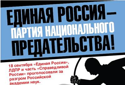 Отделом ЦК КПРФ по информационно-аналитической работе и проведению выборных кампаний подготовлена листовка к Всероссийской акции протеста против «реформы» Академии наук.