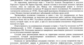 Чрезвычайное положение сложилось в связи с тем, что своевременно не была введена часть оборудования, не выполнен ряд ремонтных работ, рабочее оборудование изношено более чем на 90%. Усугубила ситуацию поставка некачественного уфимского мазута, который горит, но не греет, а при его использовании изношенное оборудование выходит из строя.