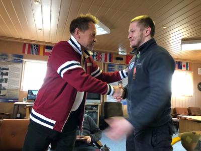 Участники экспедиции искренне поблагодарили коллектив Российской Антарктической станции «Беллинсгаузен» во главе с начальником И.В. Идрисовым за радушный прием и высказали им самые добрые пожелания успехов в их трудной и почетной работе на благо Отчизны.