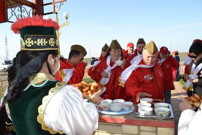 Гостей приветствовали также с традиционным национальным угощением – борцоками и калмыцким чаем - руководство Черноземельского района, местные жители.