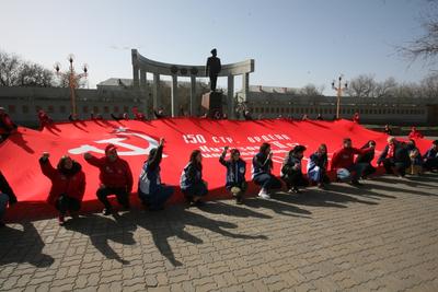 А самое первое мероприятие на калмыцкой земле участники патриотической акции провели 26 марта в поселке Комсомольский Черноземельского района. На административной границе с Дагестаном, близ поселка Артезиан, автоколонну встретила делегация КРО КПРФ в составе секретарей рескома партии Мигмир Бембеевой и Сергея Цымбалова, председателя КРО ВЖС «Надежда России» Гиляны Манджиевой, представителей комсомольской организации республики.